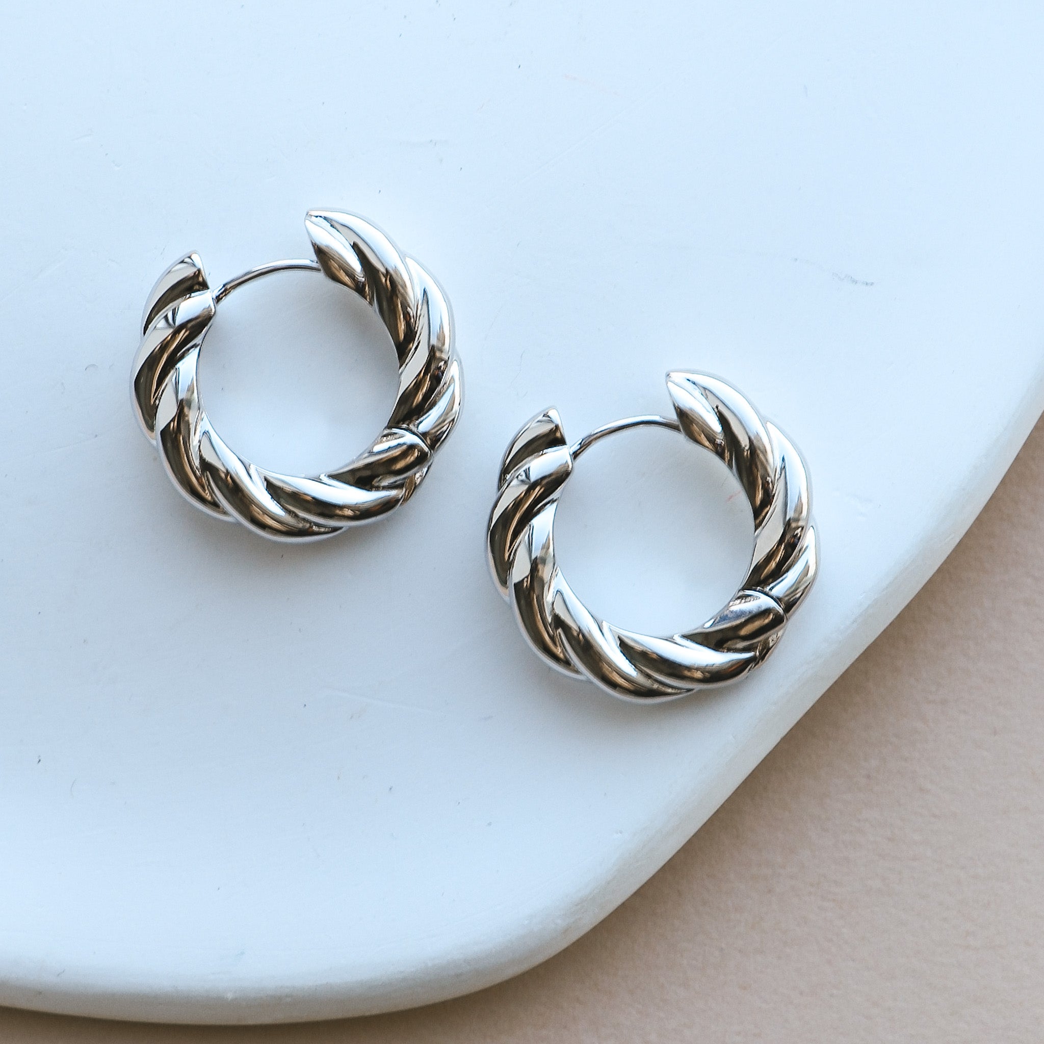 Hoop earrings with a chunky twisted design. Comfortable sleeper clasp. Add a distinctive touch to your outfits!