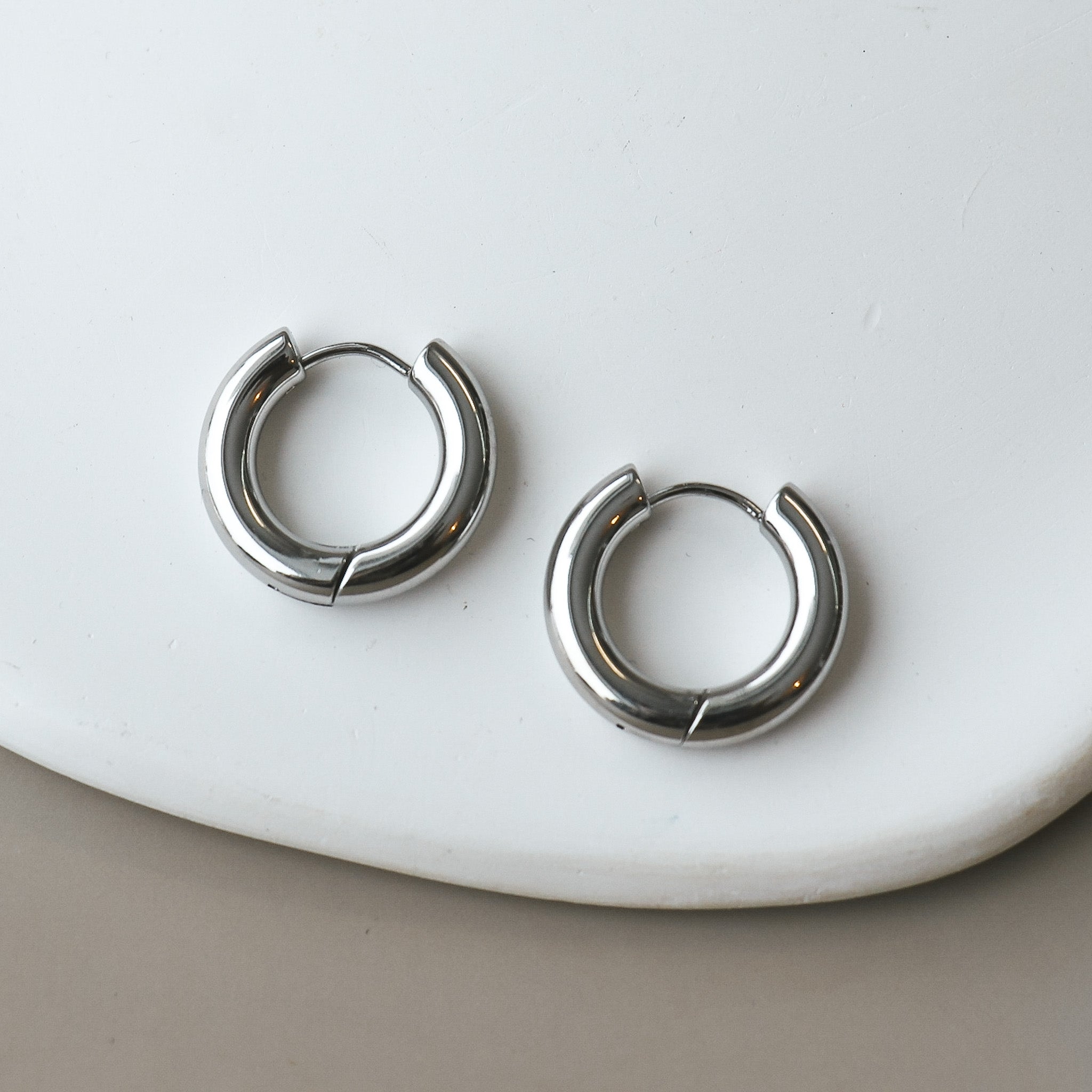 Boucles d'oreilles de type anneaux épais.