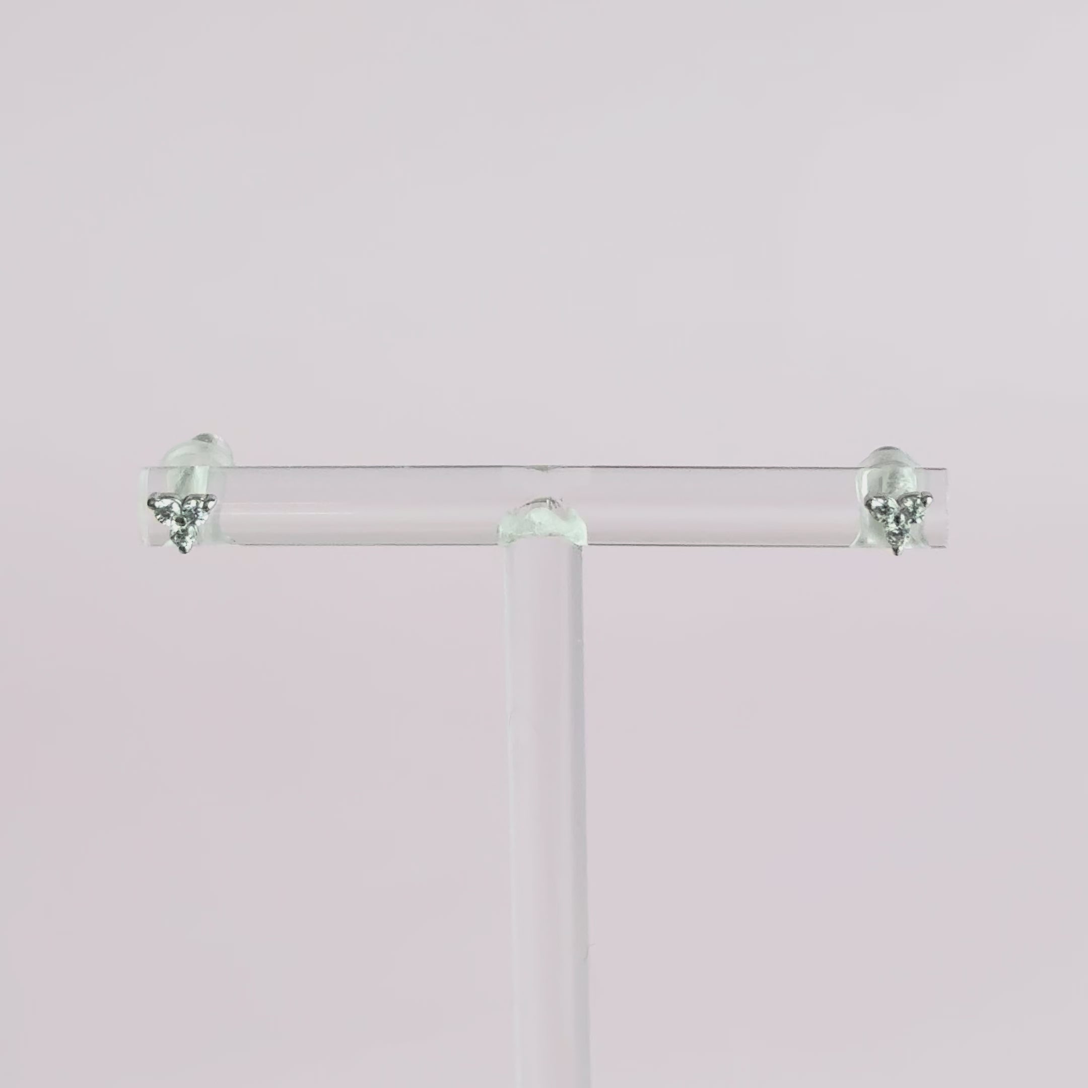 Small stud type earrings adorned with three white zircons forming a small triangle. Can be worn in the first, second or third lobe piercing holes. Versatile, they will go with all styles.