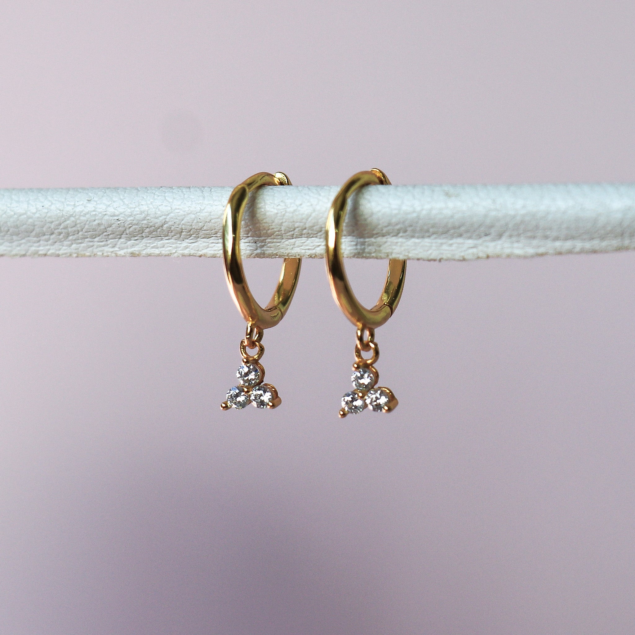 Hoop earrings adorned with a small delicate pendant made of 3 zircons. Minimalist and sparkly, they complement all types of looks.