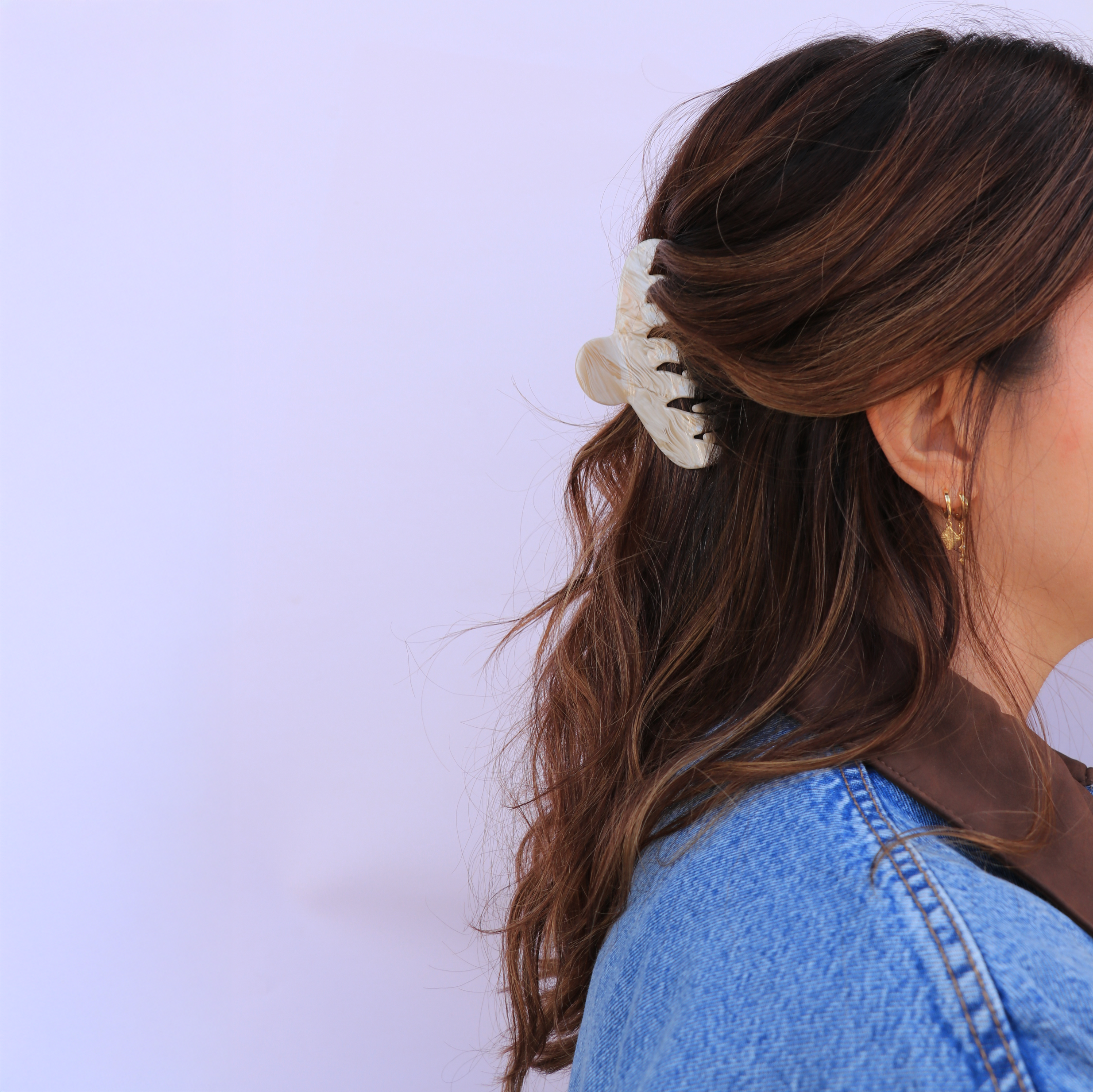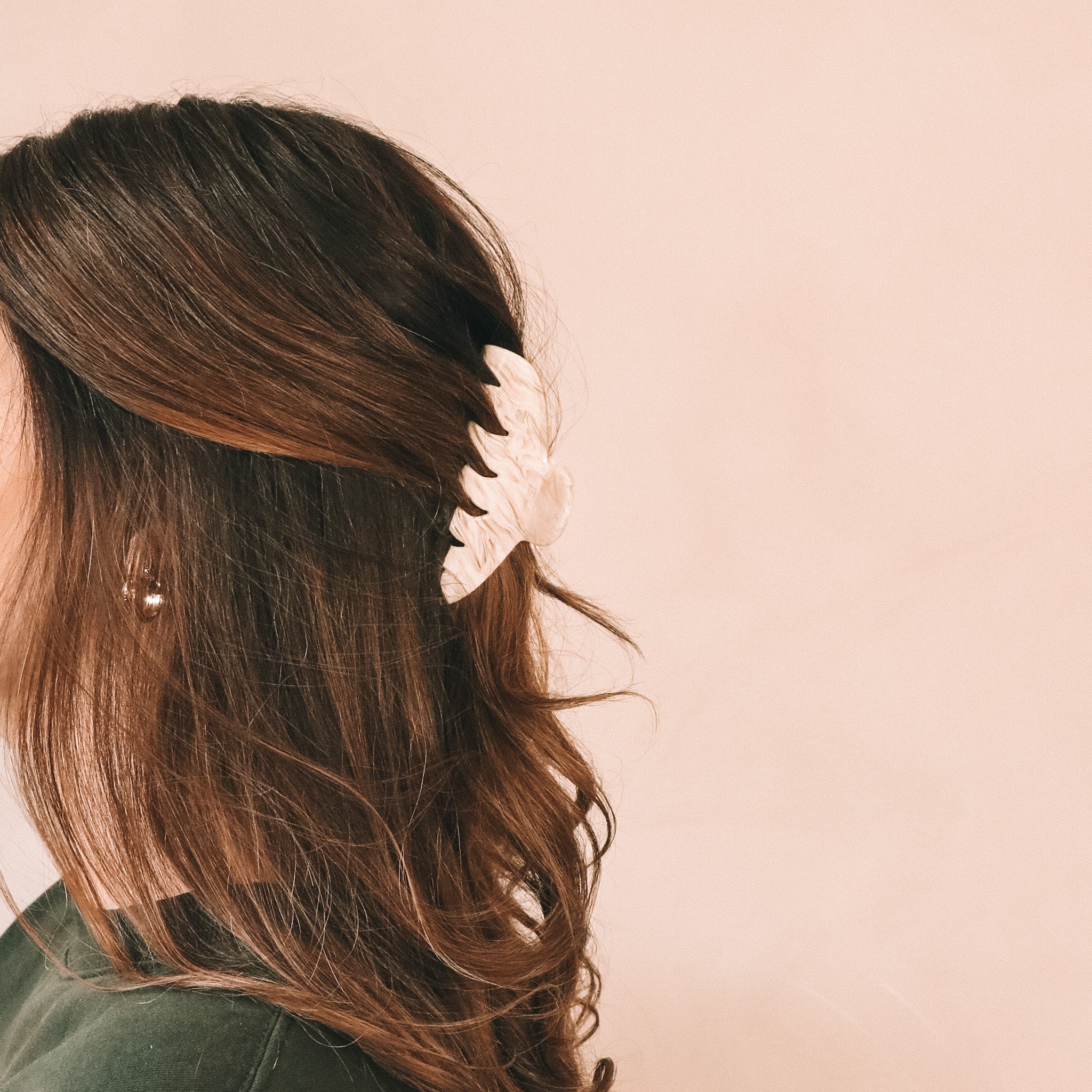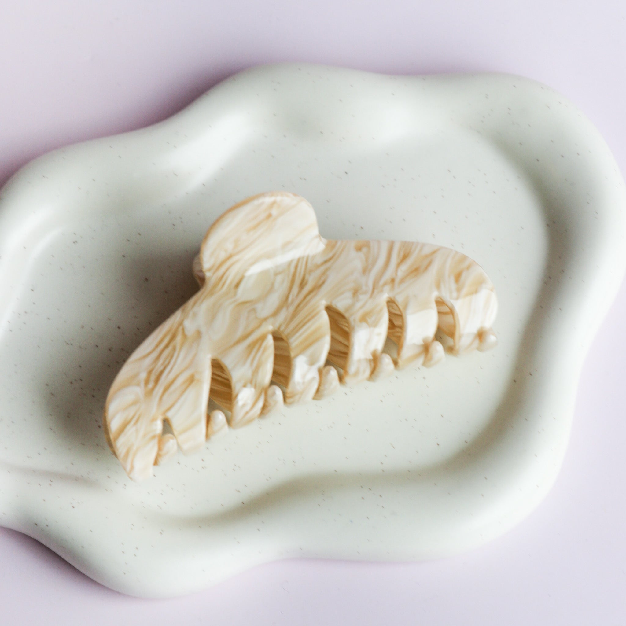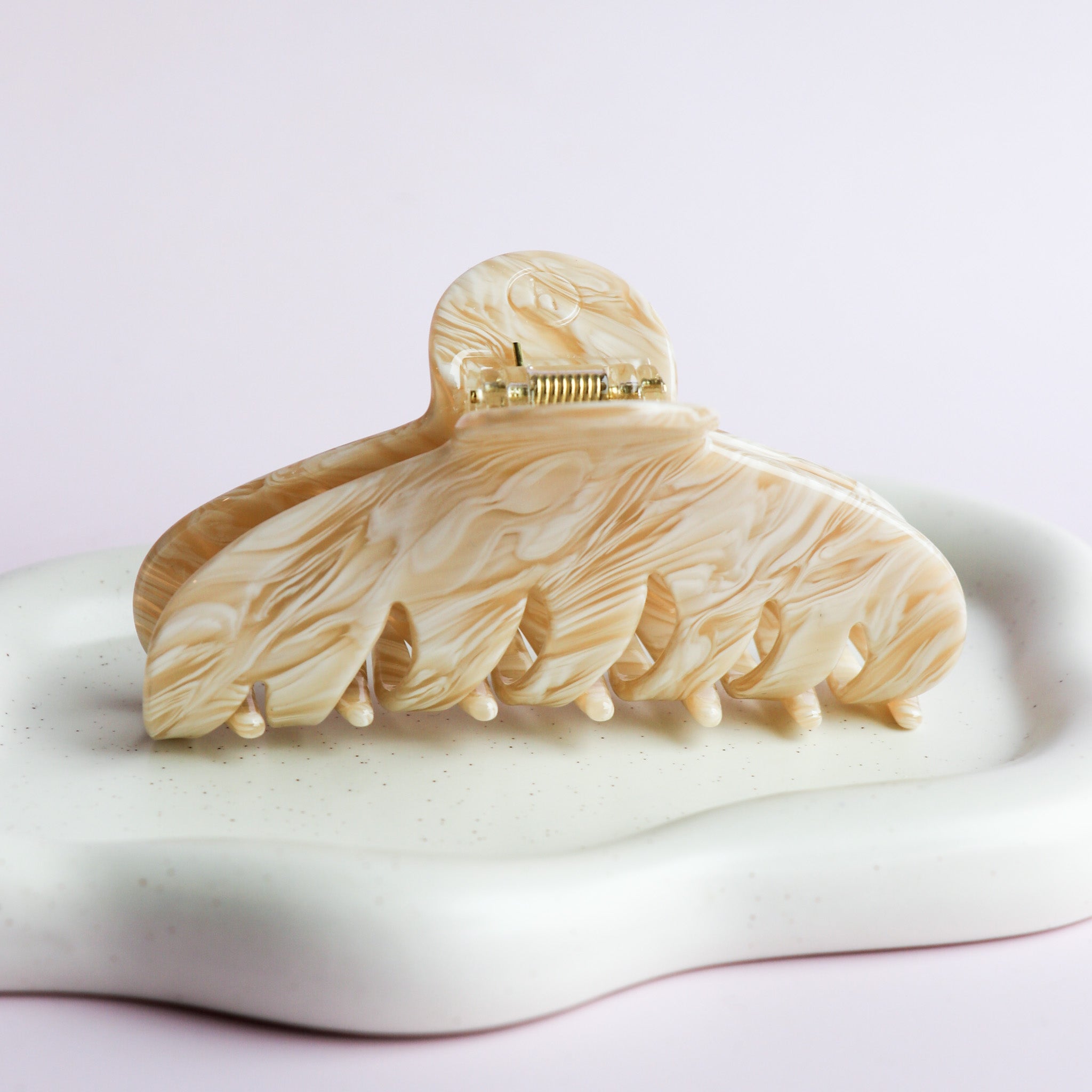 Rounded hair clip in cream shades. The Agatha is strong and is able to hold the densest hair.