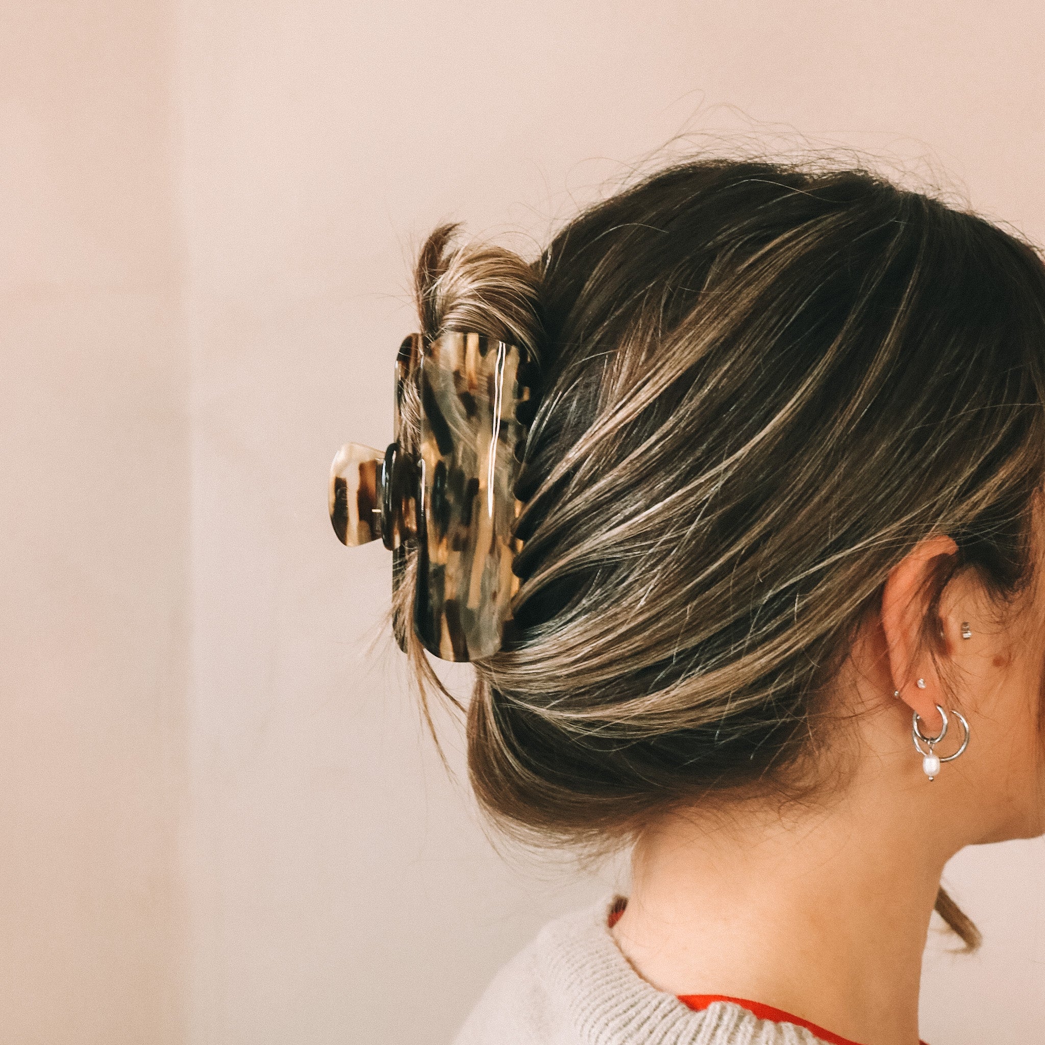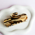 Rectangular hair clip with rounded corners. Perfect for long hair, in full ponytail or half ponytail. Clip in brown butter yellow and touches of gold .