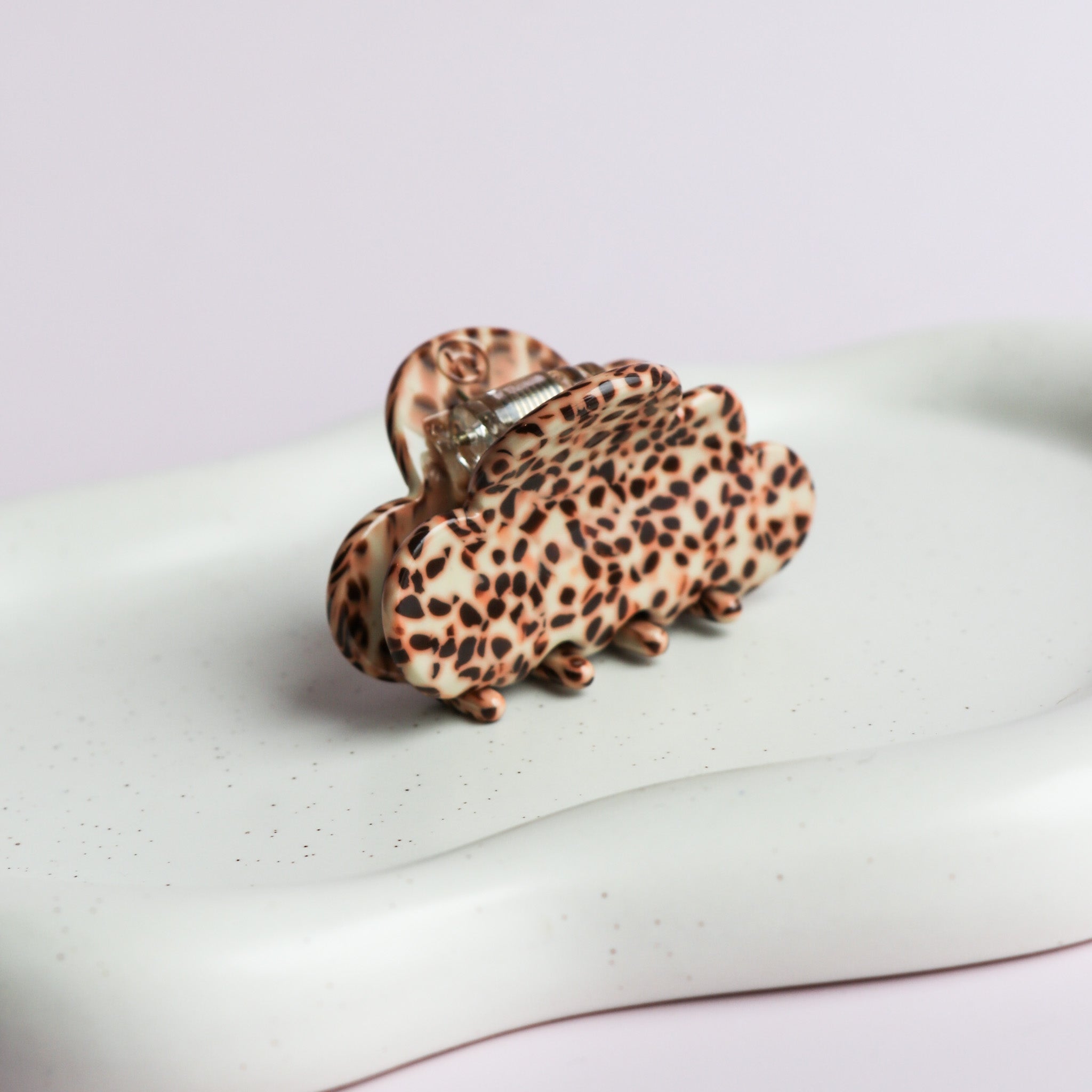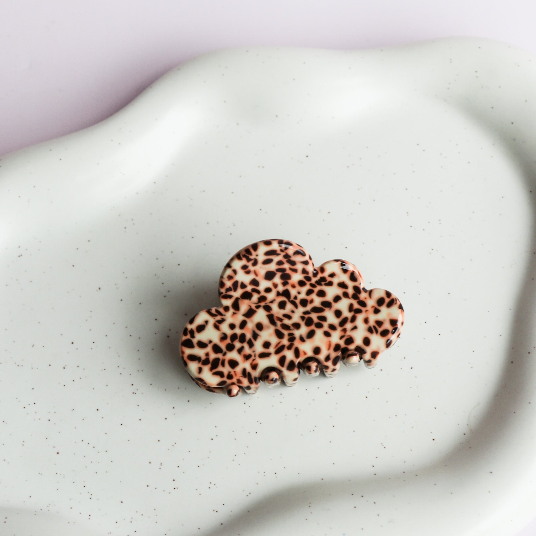Hair clip in the shape of a small cloud. Ideal for fine hair or half-ponytails. Original and colorful, in shades of beige, black and pink.