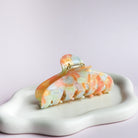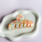 These clips are made from acetate and the patterns may be slightly different from each other as well as from the photo which makes them unique!
