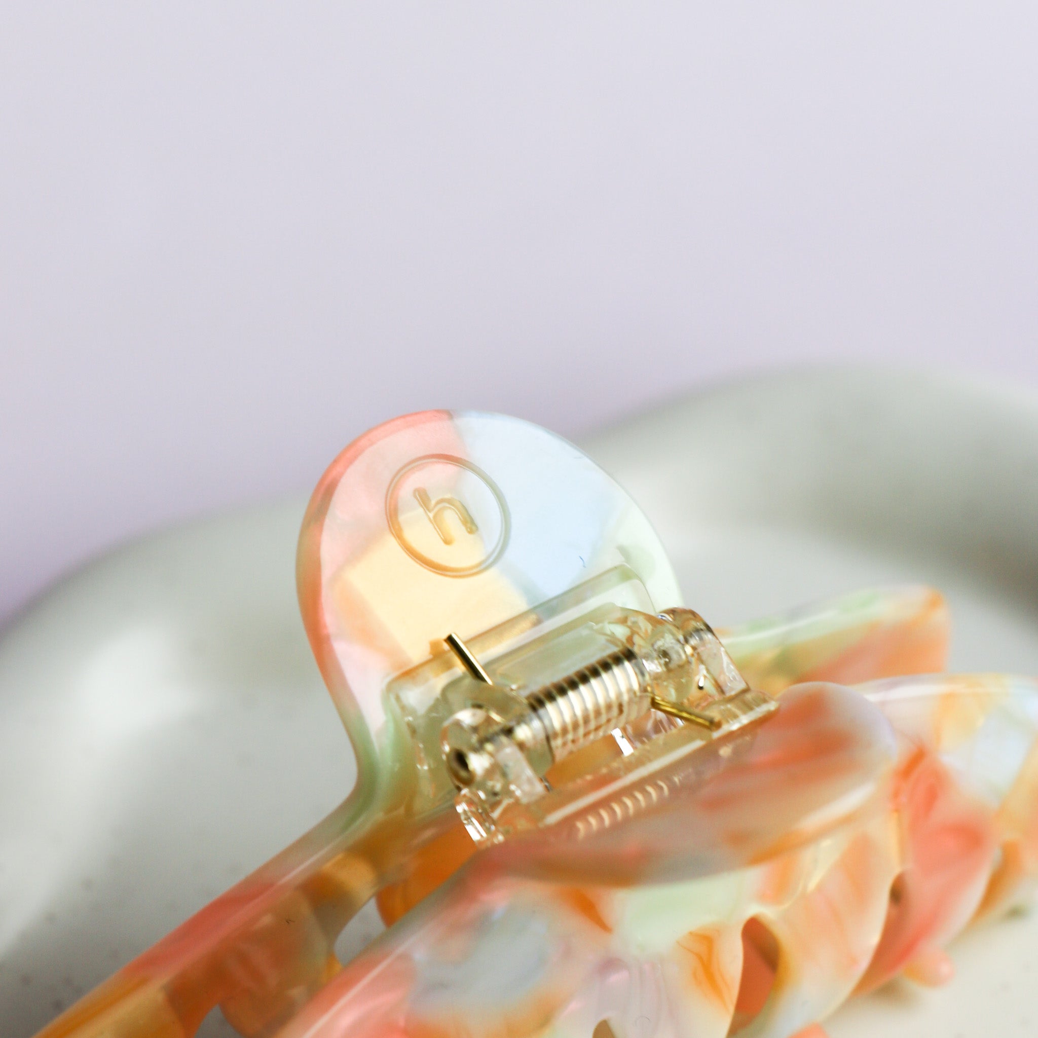 Rounded hair clip in pastel colors. The Agatha is strong and is able to hold the densest hair.