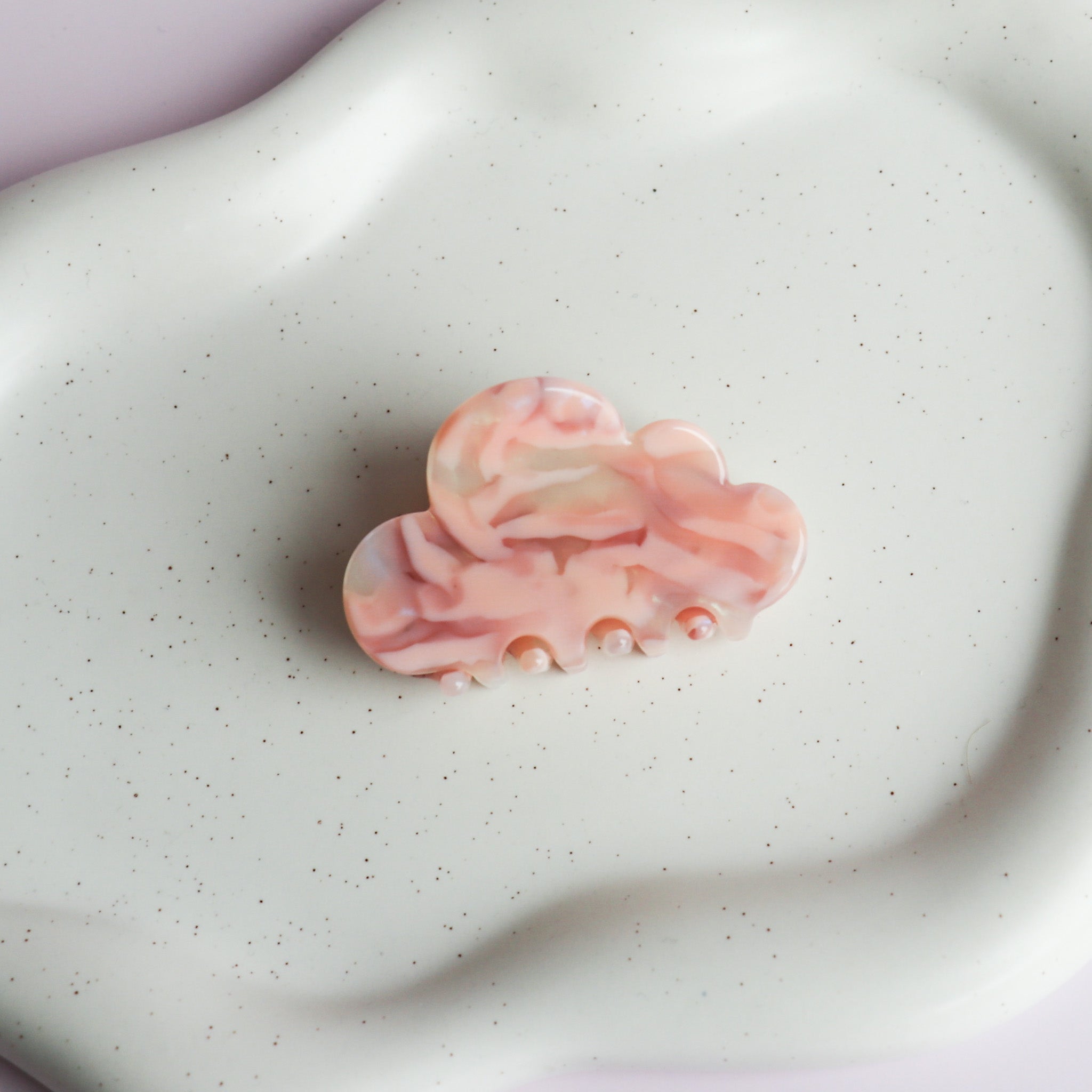 Hair clip in the shape of a small cloud. Ideal for fine hair or half-ponytails. Original and colorful, in shades of pink and beige.