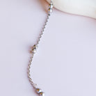 A close to the neck style necklace composed of a chain with small double beads. A unique basic that can be worn alone or layered with other necklaces.
