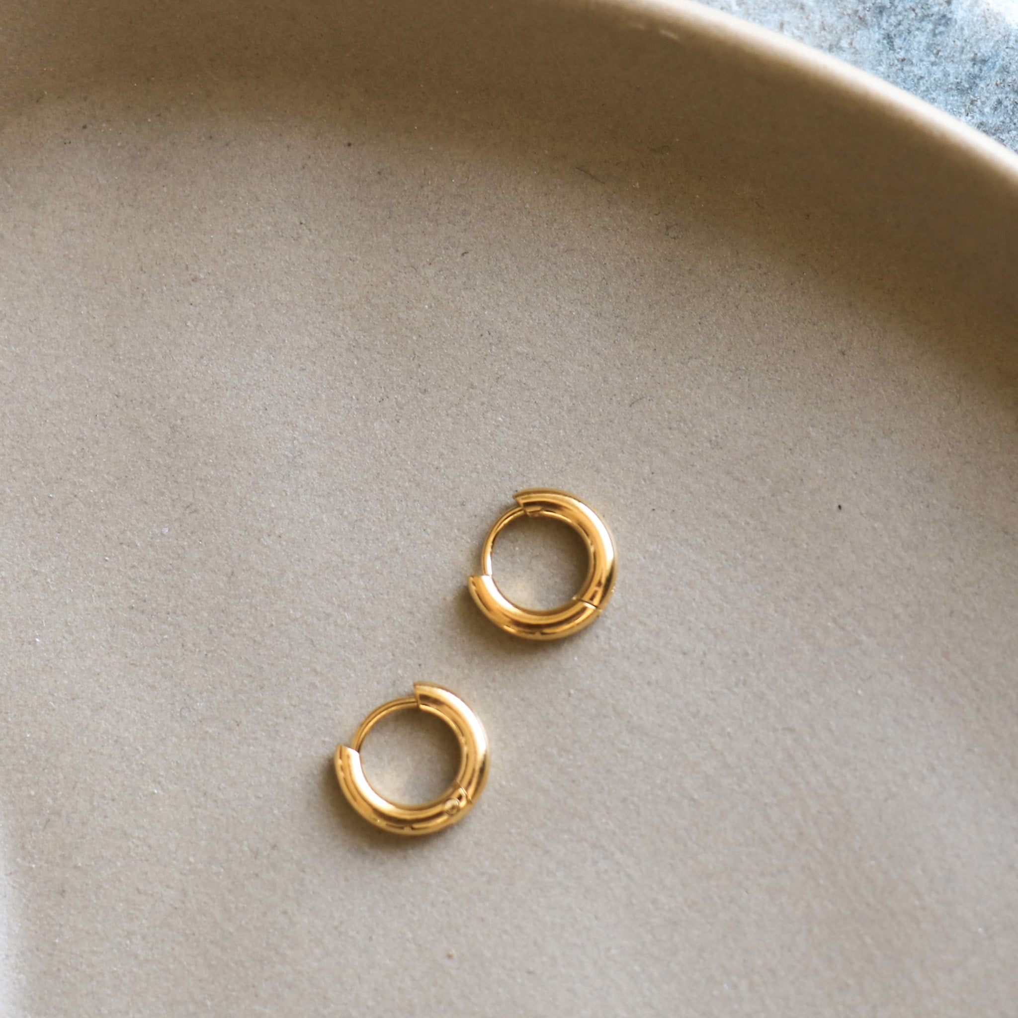 Stainless steel hoop earrings. These small sleepers are comfortable, lightweight, and perfect for 2nd and 3rd holes.
