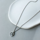 Delicate chain necklace with a slightly irregularly shaped pendant and a heart in its center.