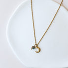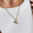 Necklace featuring a crescent moon pendant and a natural amazonite stone.