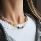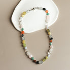 A close to the neck-style necklace composed of various natural stones in assorted sizes and colors. The clasp is magnetic, making the necklace even easier to put on and take off.