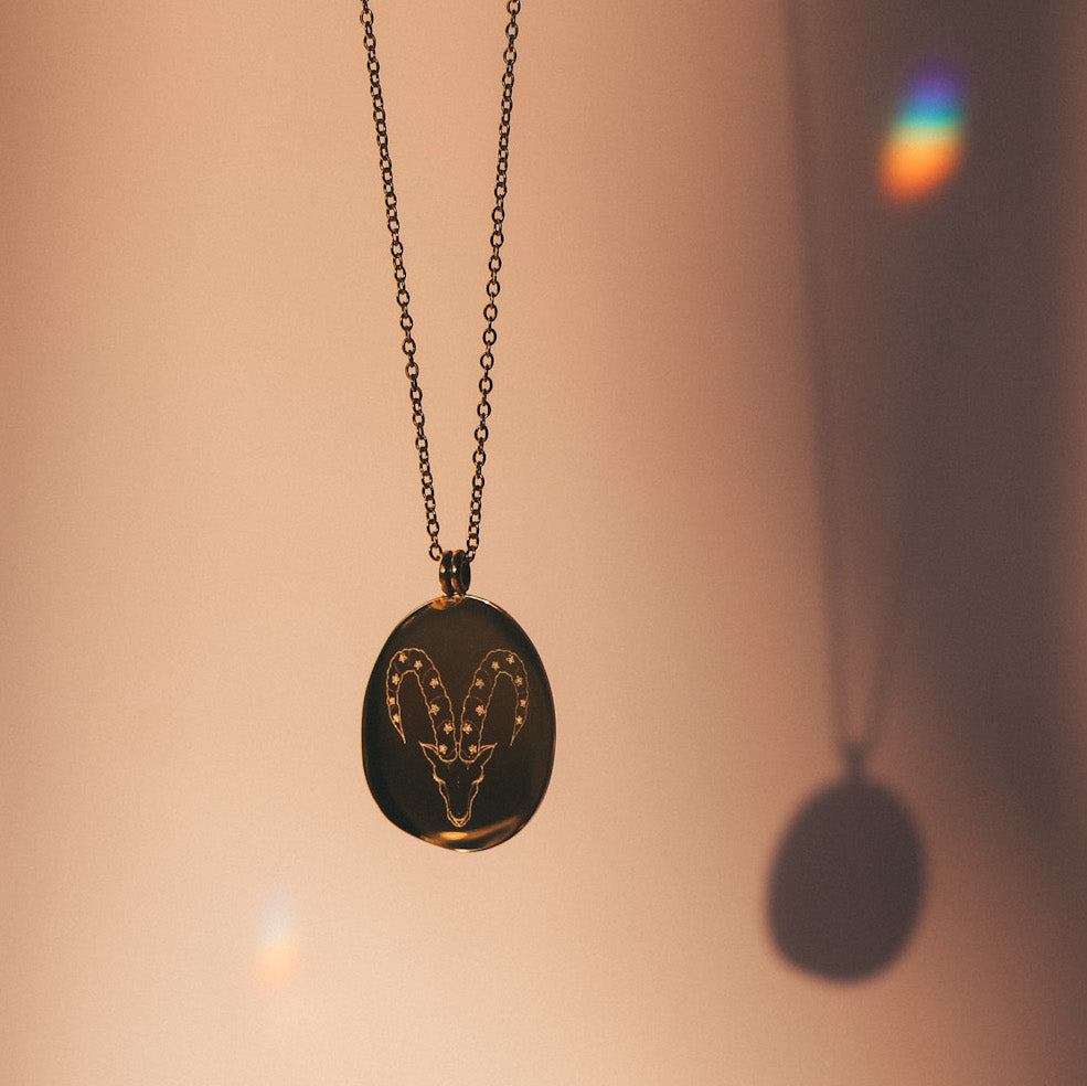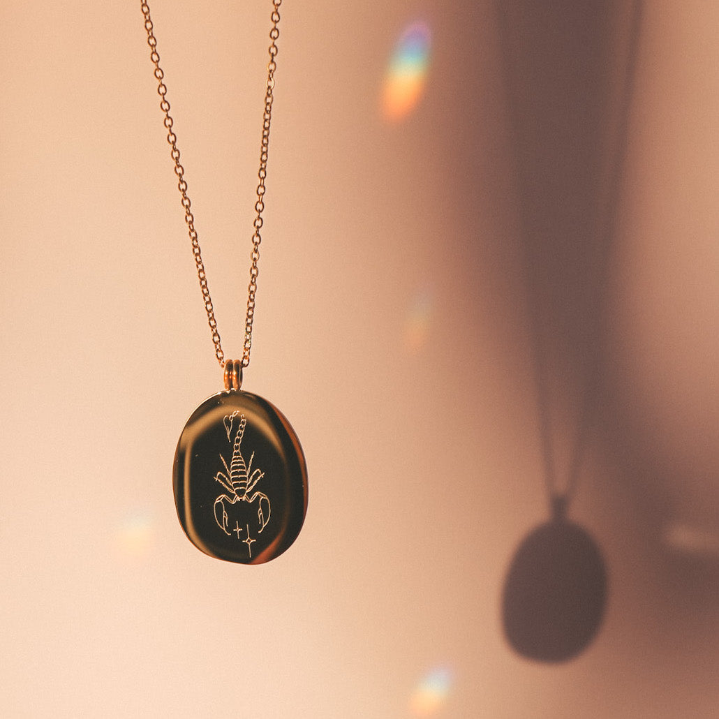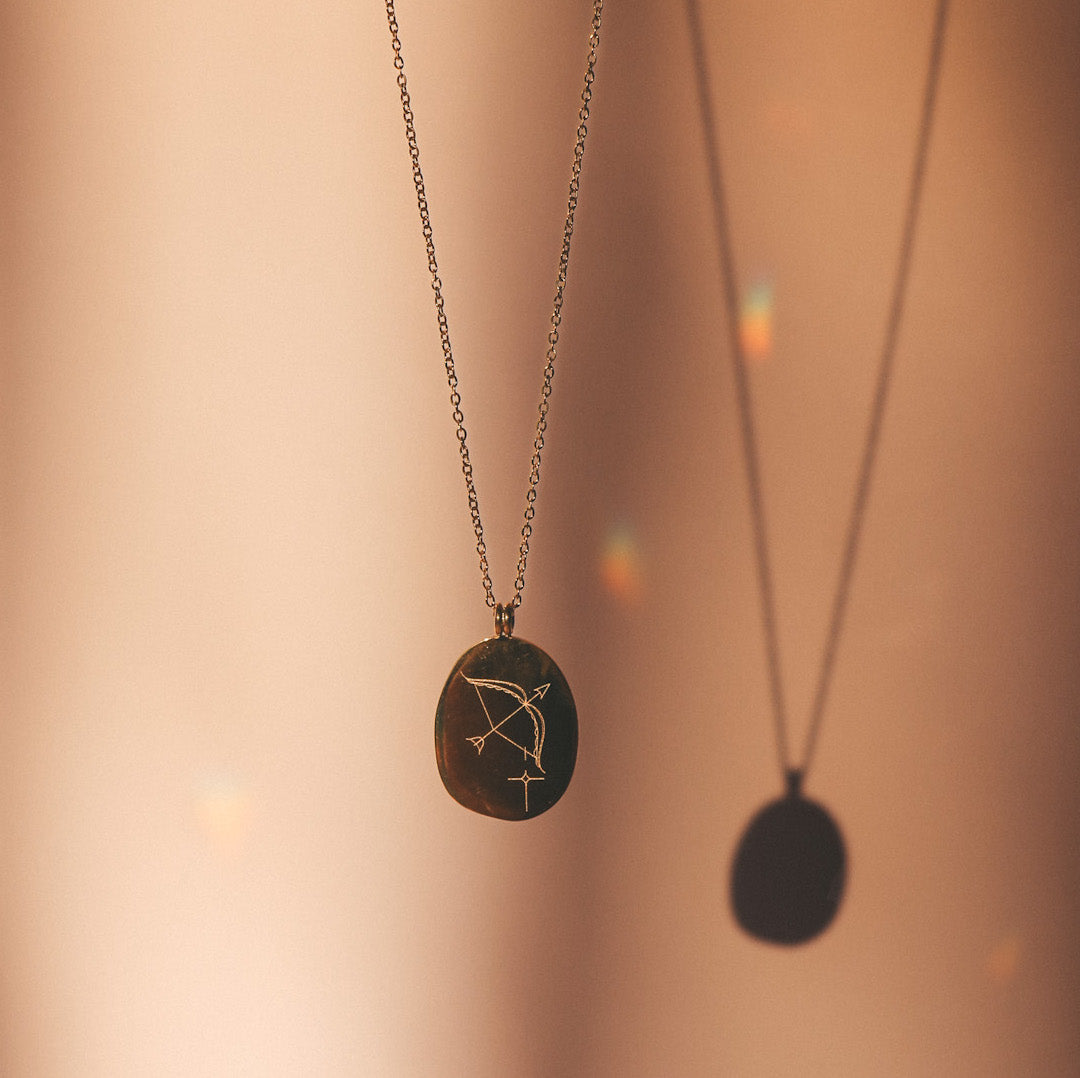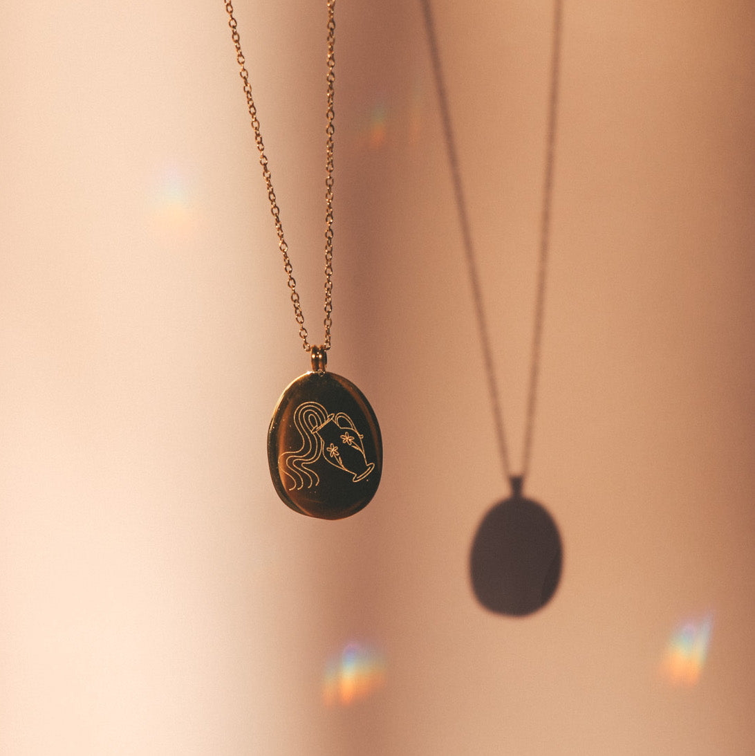 Our Zodiac necklaces are unique and original. Discover the engraving of your sign with the drawings of the artist and tattoo artist Émilie Paré (@tatoueusee). Engraved on a slightly irregular oval shaped medallion, you will find on one side the design of the sign and on the other side the name of the sign in French.