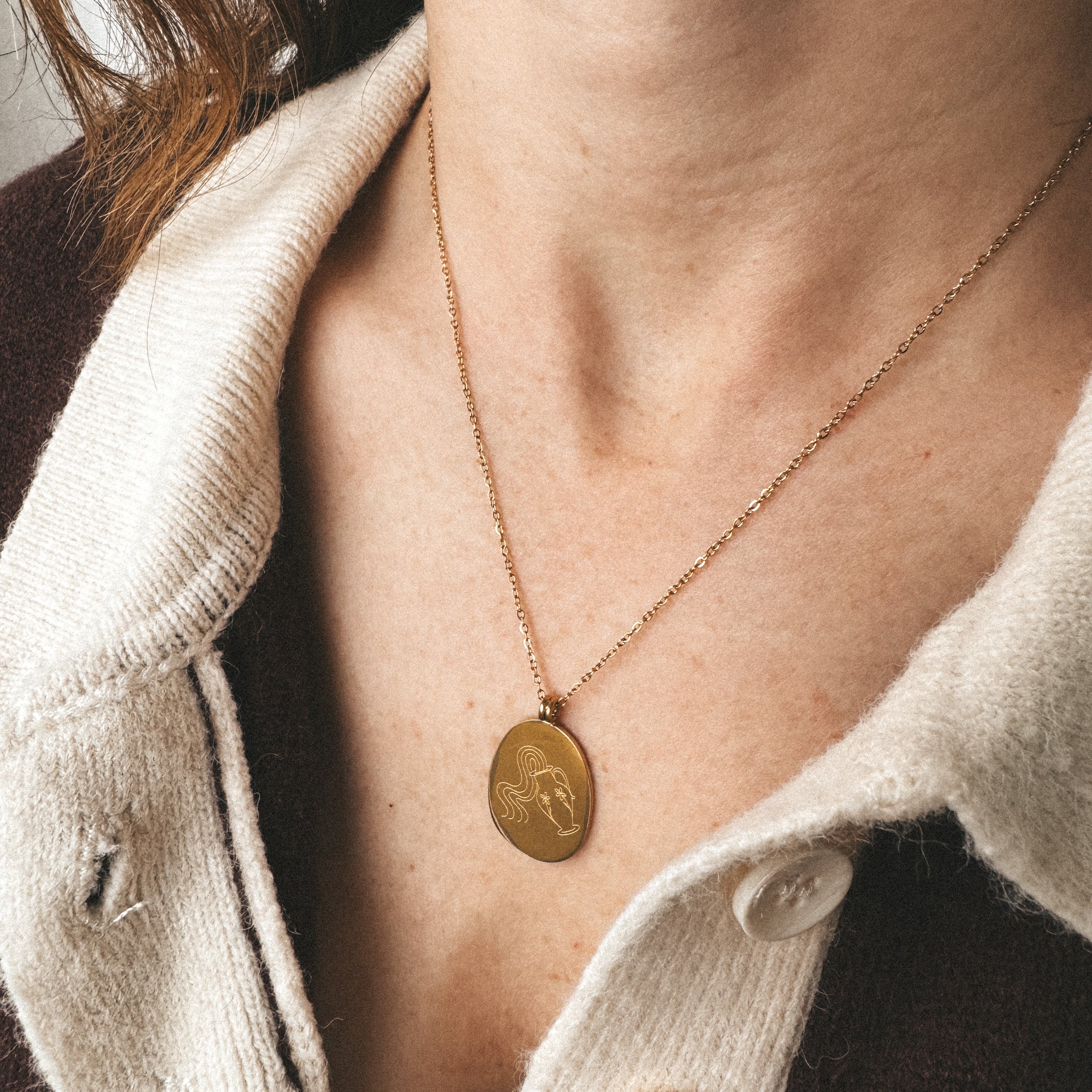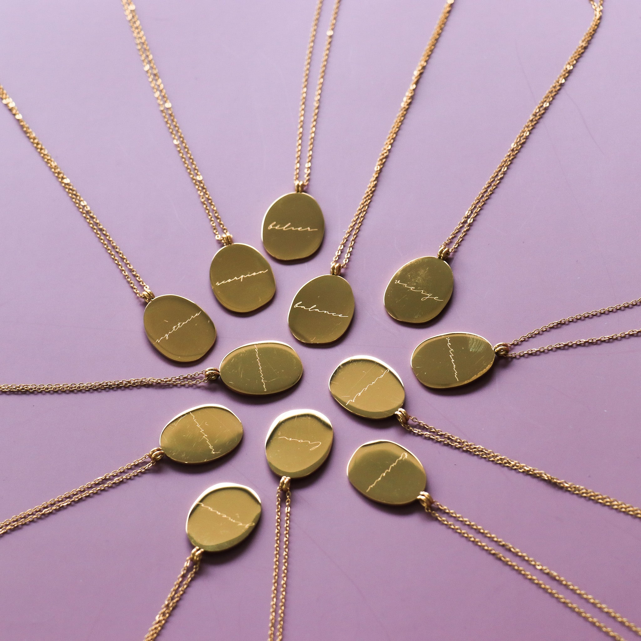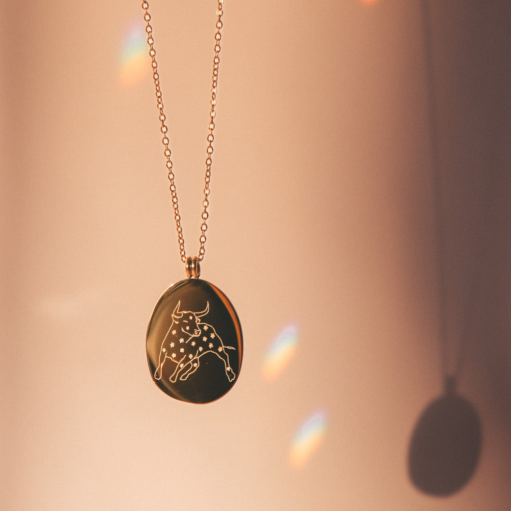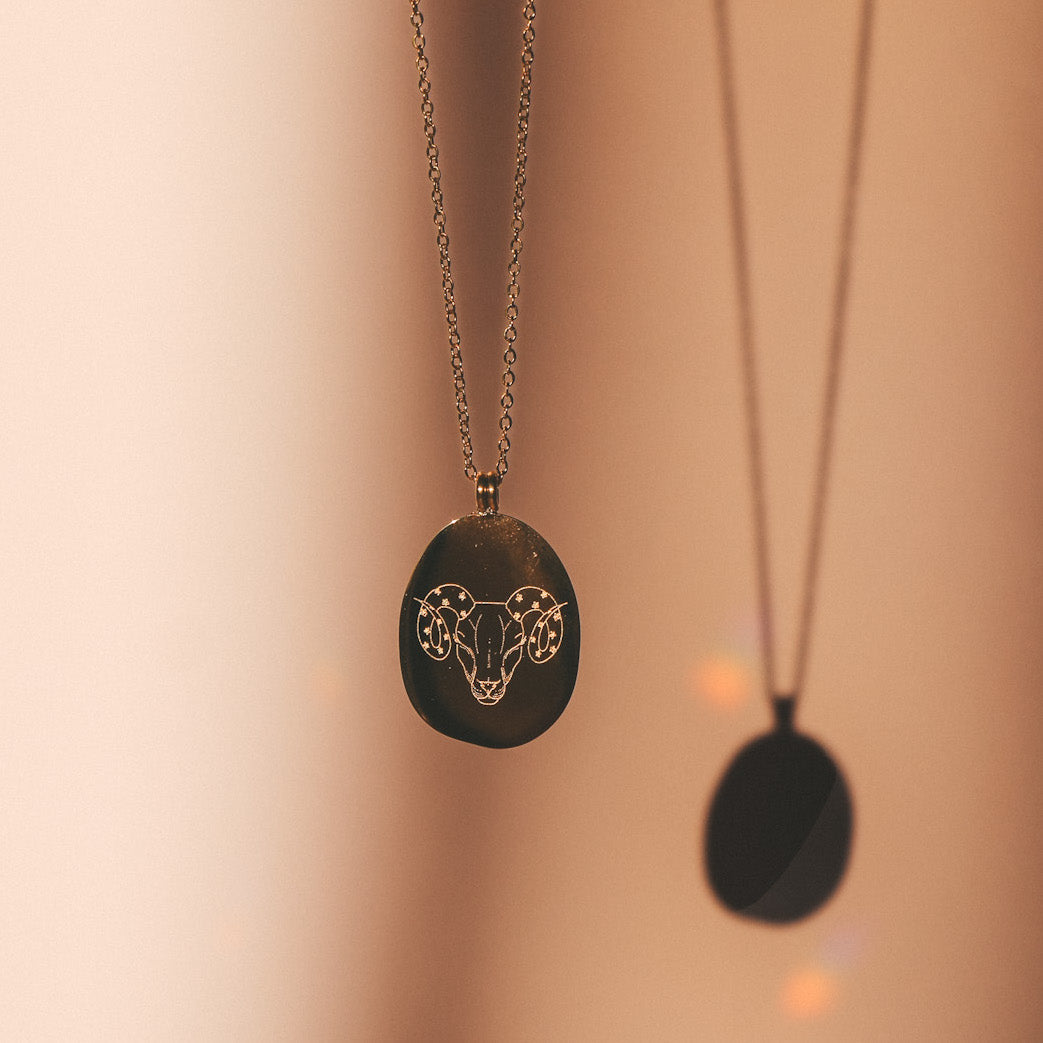 Our Zodiac necklaces are unique and original. Discover the engraving of your sign with the drawings of the artist and tattoo artist Émilie Paré (@tatoueusee). Engraved on a slightly irregular oval shaped medallion, you will find on one side the design of the sign and on the other side the name of the sign in French.