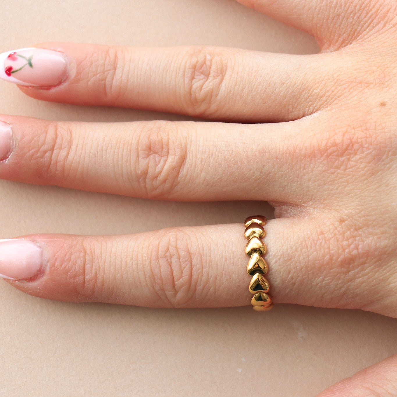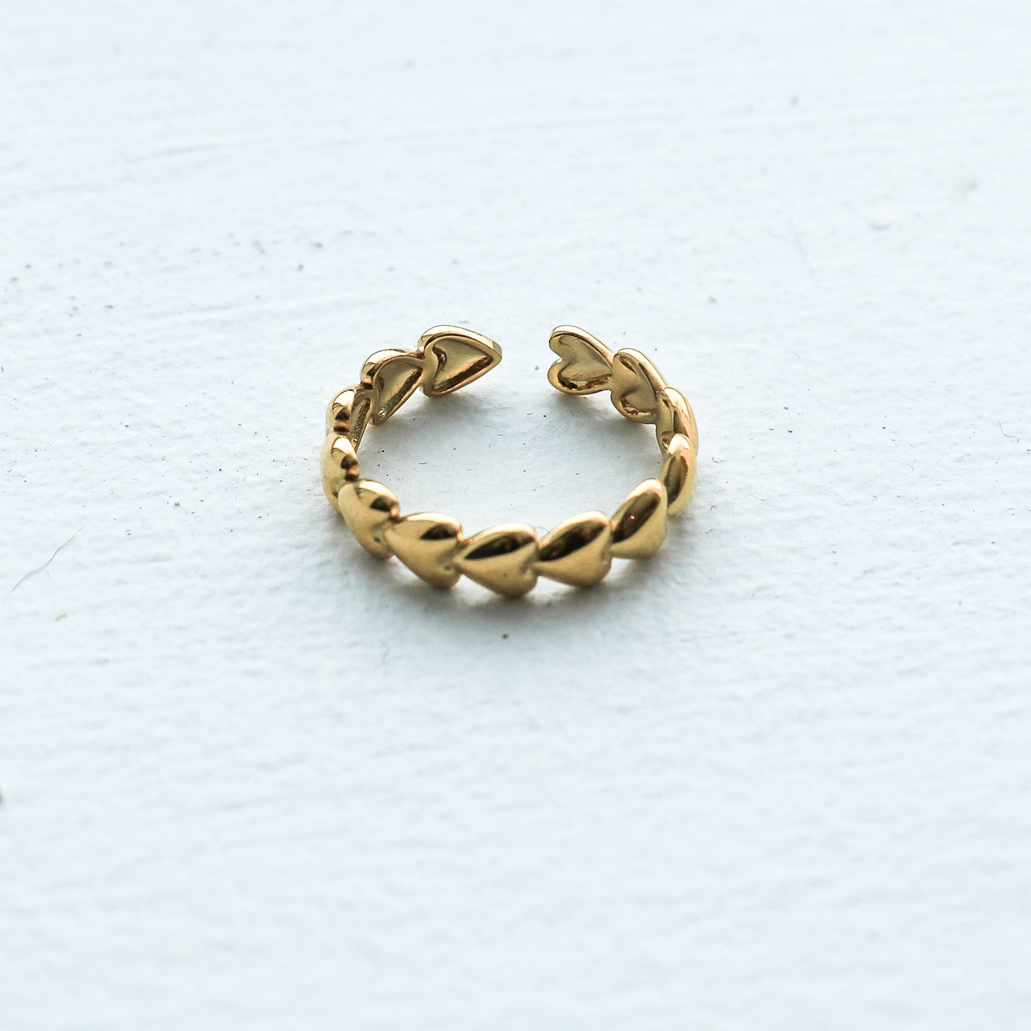 Bague ajustable composée de petits coeurs. Se porte en tout temps pour un look extra.