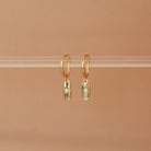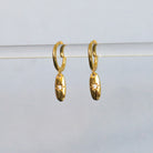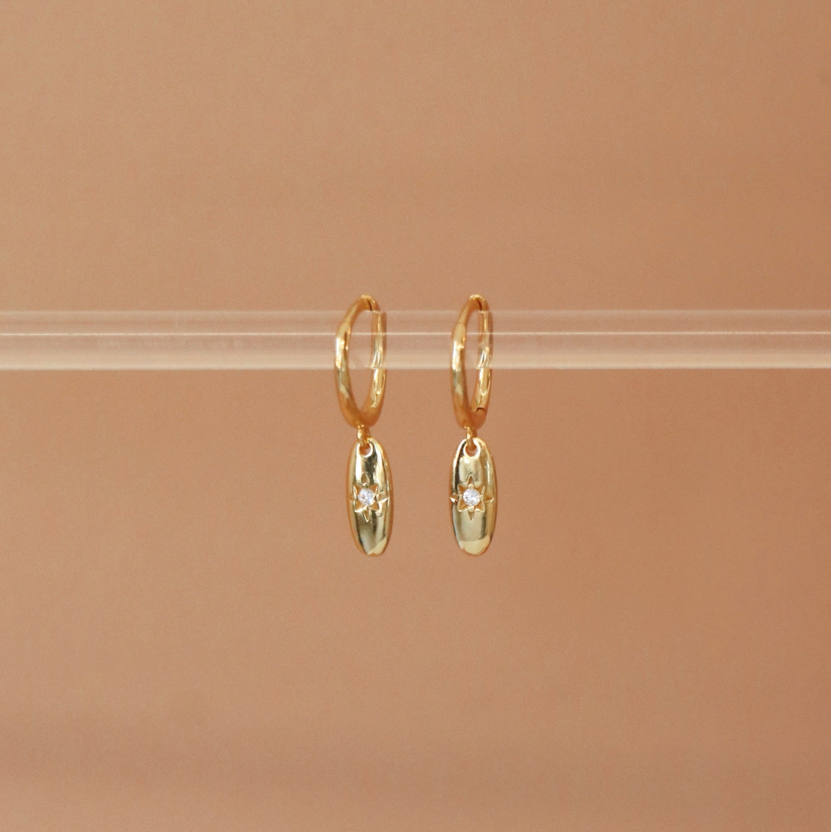 Comfortable sleeper earrings for everyday wear. Discover an oval-shaped pendant with a small zircon and engraving.